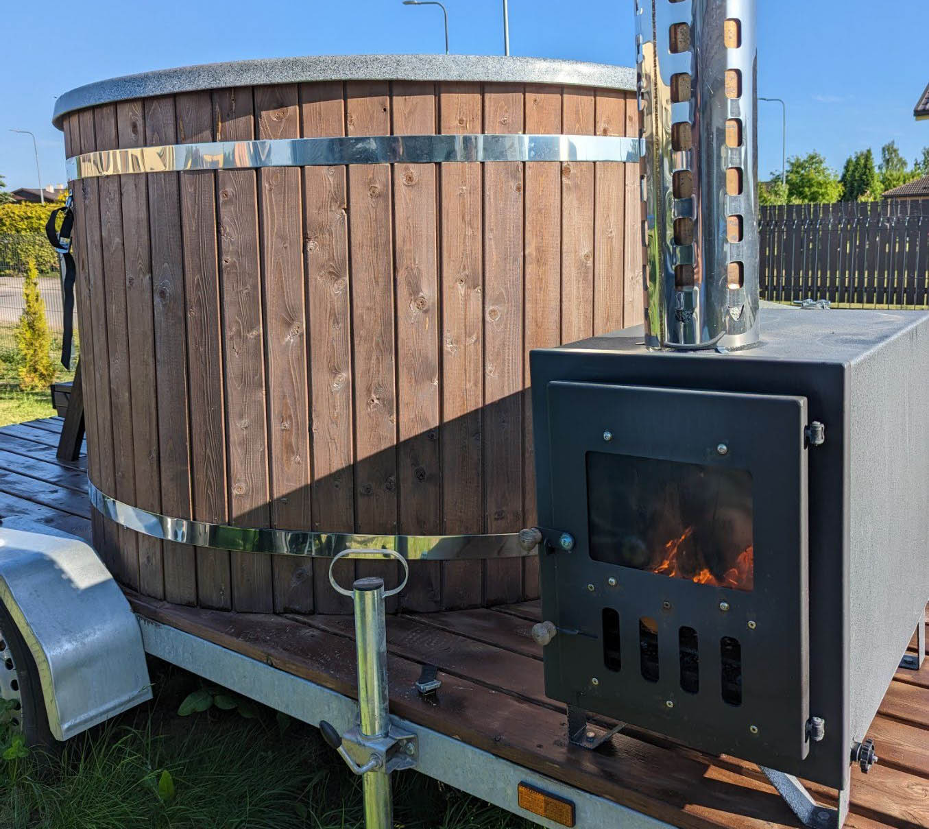 1600L kümblustünn mahutab korraga kuni 5 täiskasvanut ning sobib igale üritusele ja iga ilmaga. Kütmisaeg on 1,5-2 tundi. Meeleolu loomiseks on paigaldatud LED valgustus.